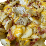 Quarter Pound Seasoned Sausage Patty, Cheese, Crispy Potato Sticks, Onion Bacon Jam, and Over-Easy Egg, All on a toasted, Butter Brioche Bun with Maple Aioli. Price includes one regular side.