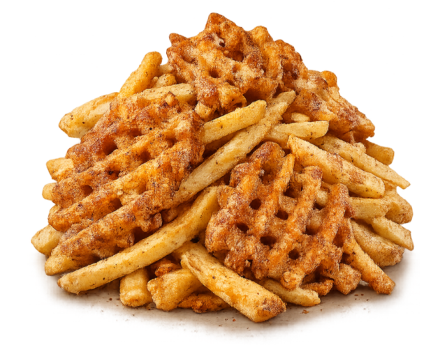 Sausage patty, cheese, crispy potato stix, bacon jam, over-easy egg & maple aioli on brioche – price includes one regular side.